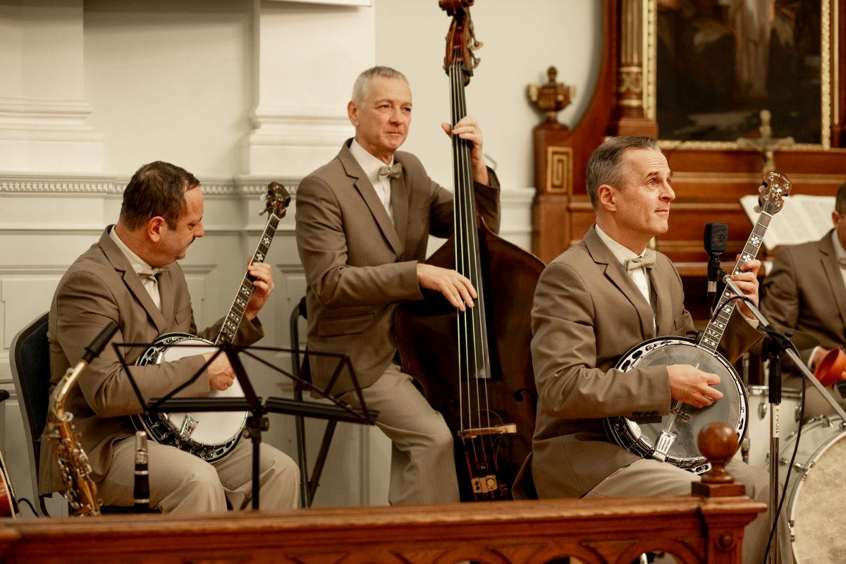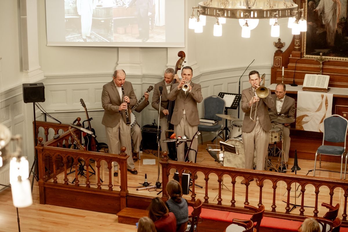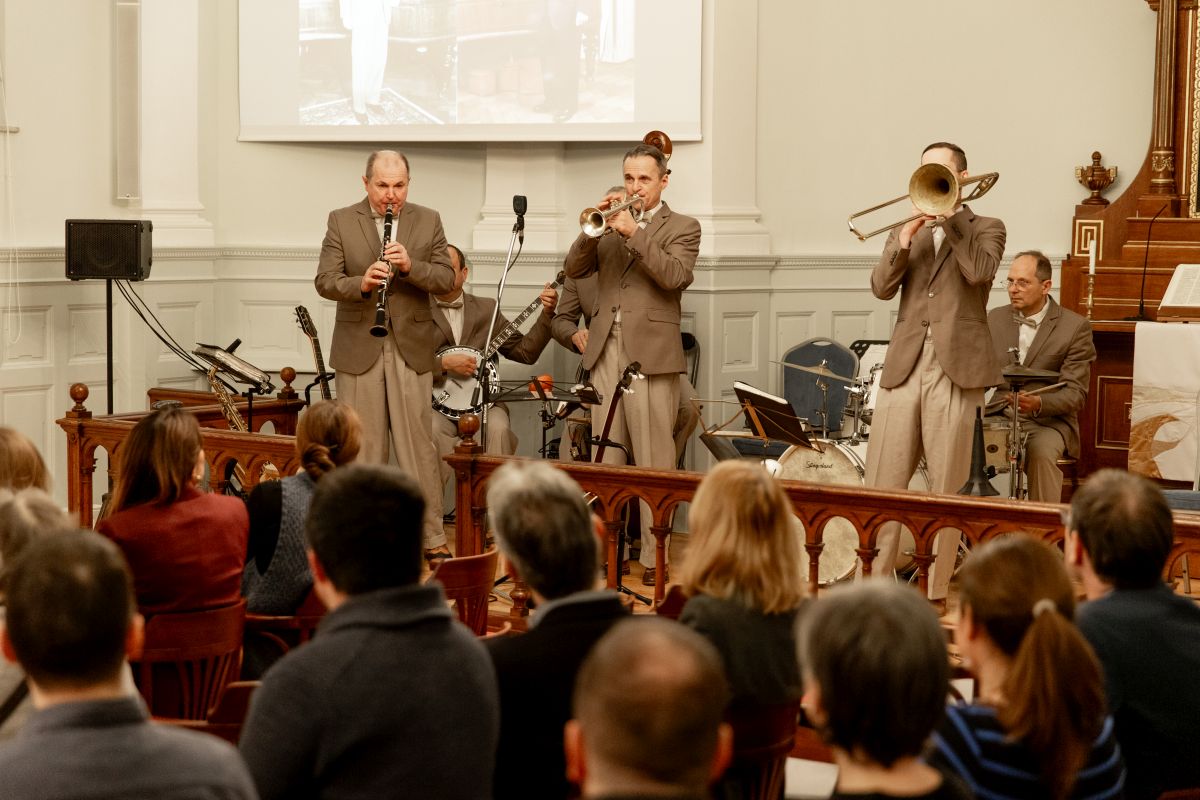 Vendégeinket az est folyamán a Hot Jazz Band szórakoztatta. A tengerentúli szerzők művei mellett a magyar származású, de Amerikában is jelentős karriert befutott zeneszerzők – Schwartz Jenő, Romberg Zsigmond, Seress Rezső – darabjai bizonyították a transzatlanti kölcsönhatások jelenlétét a hazai és nemzetközi slágerkultúrában.
