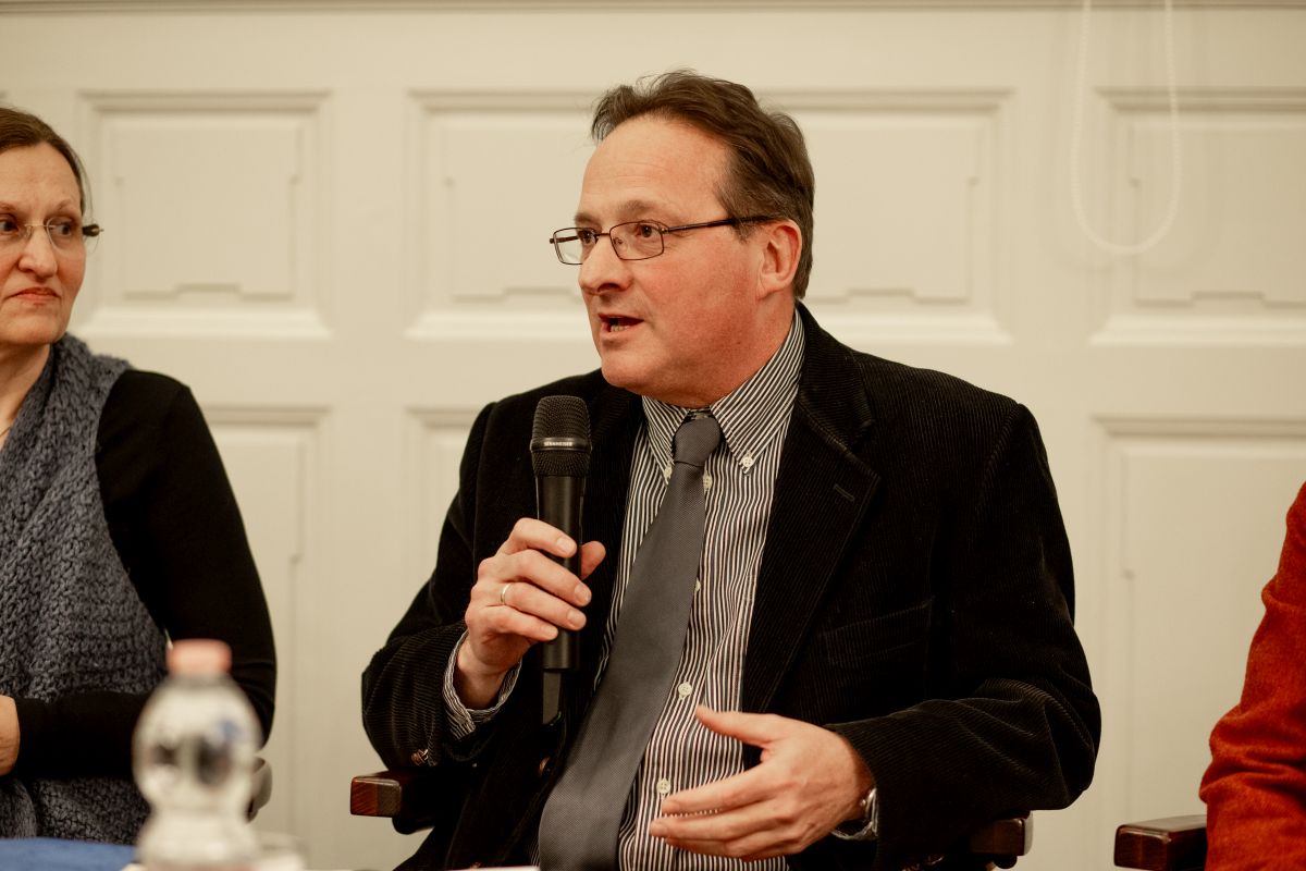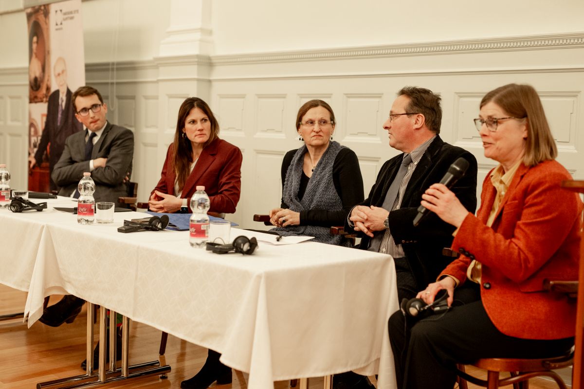 Előadását kerekasztal-beszélgetés követte. Ennek során külföldi vendégeinkhez az Egyesült Államok magyar közösségeit jól ismerő két kutató, Balogh Balázs (az ELTE Humán Tudományok Kutatóközpontjának főigazgatója) és Fülemile Ágnes (tudományos főmunkatárs, ELTE HTK Néprajztudományi Intézet, a Balassi Intézet New York-i Magyar Kulturális Központ egykori igazgatója) csatlakozott. Kocsev Bence kollégánk moderátorként arról kérdezte őket, miben látják a transzatlanti kulturális kötődések hatását, továbbélését napjaink Amerikájának eszmei-művészeti-tudományos örökségében. A tengerentúli kollégák elsősorban a családi emlékezet jelentőségét hangsúlyozták, és azokra a „kulturális nyomokra” hívták fel a figyelmet, amelyek – mint például a Hesburgh Library Dante-állománya – szigetszerűen vannak jelen az amerikai gondolkodásban. Ezeknek (is) volt köszönhető, hogy a rendszerváltást követően ugrásszerűen megélénkült az érdeklődés a közép-európai gyökerekkel rendelkező családok körében a felmenők hátrahagyott világa, írásos és tárgyi emlékei, egykori lakóhelyei iránt.